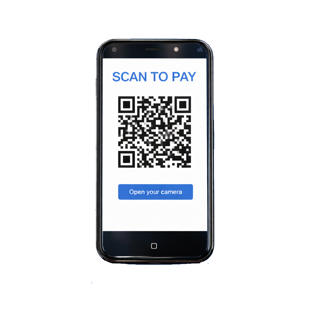 The customer scans the QR code using their smartphone — no app or special hardware required.